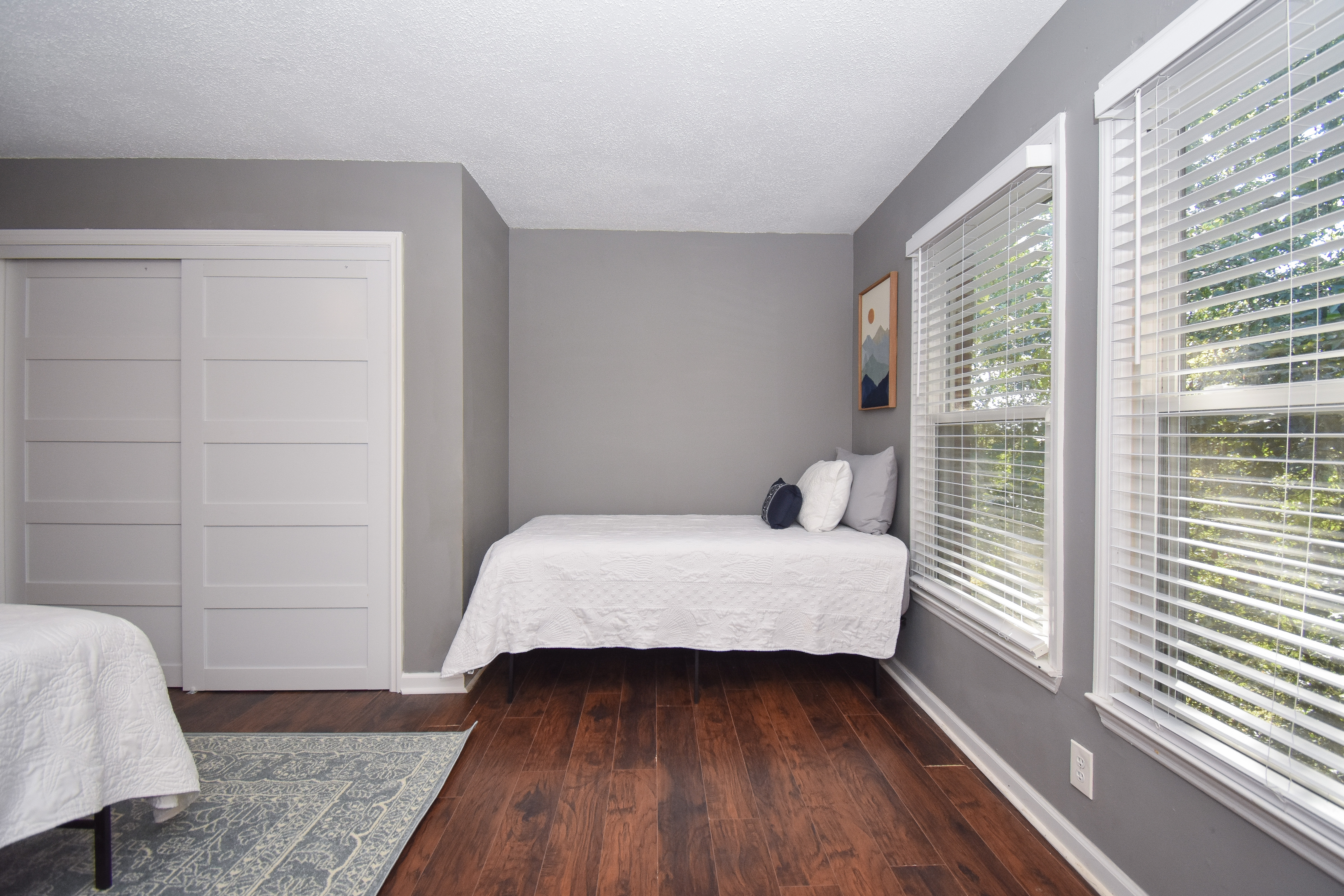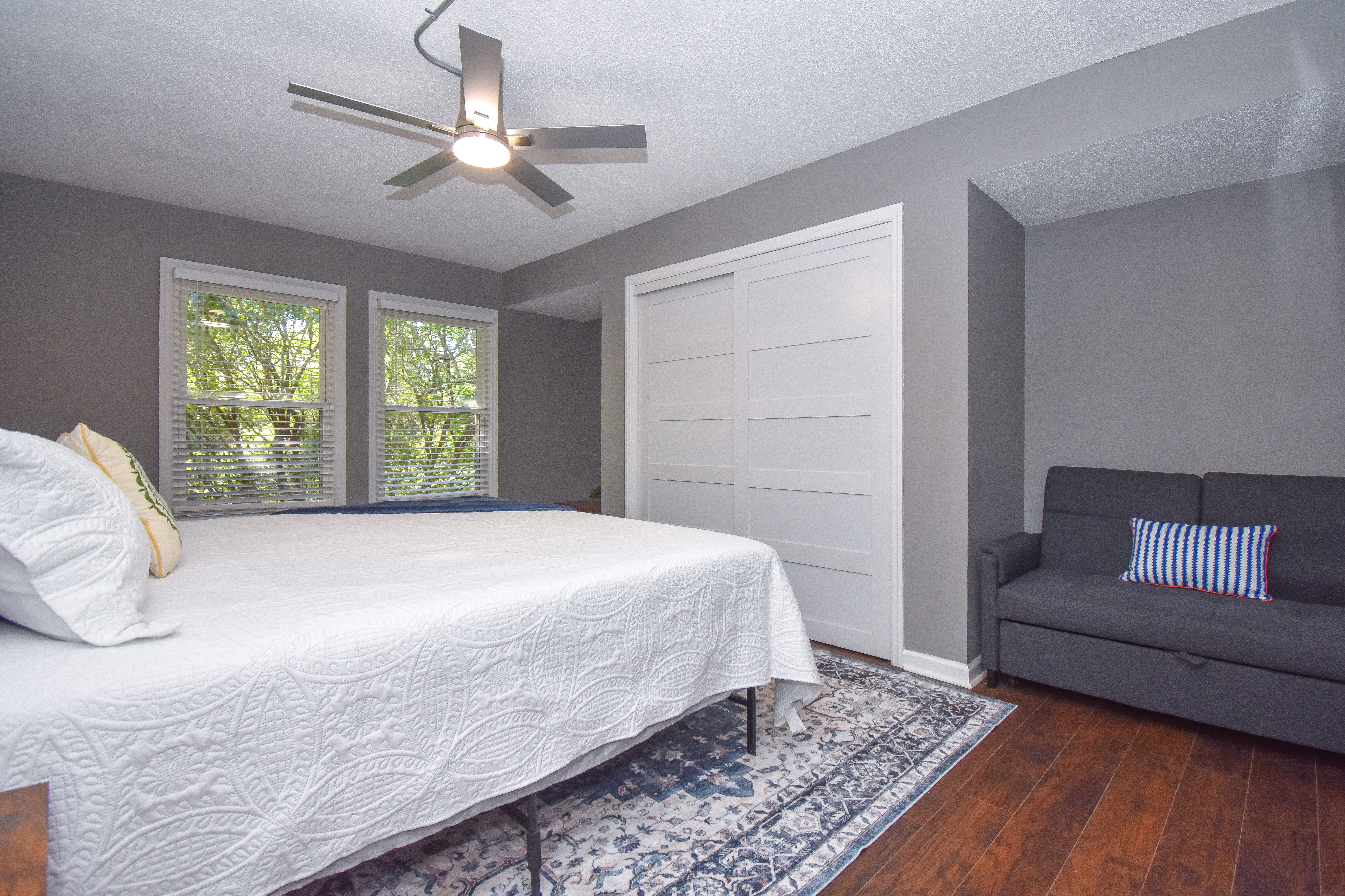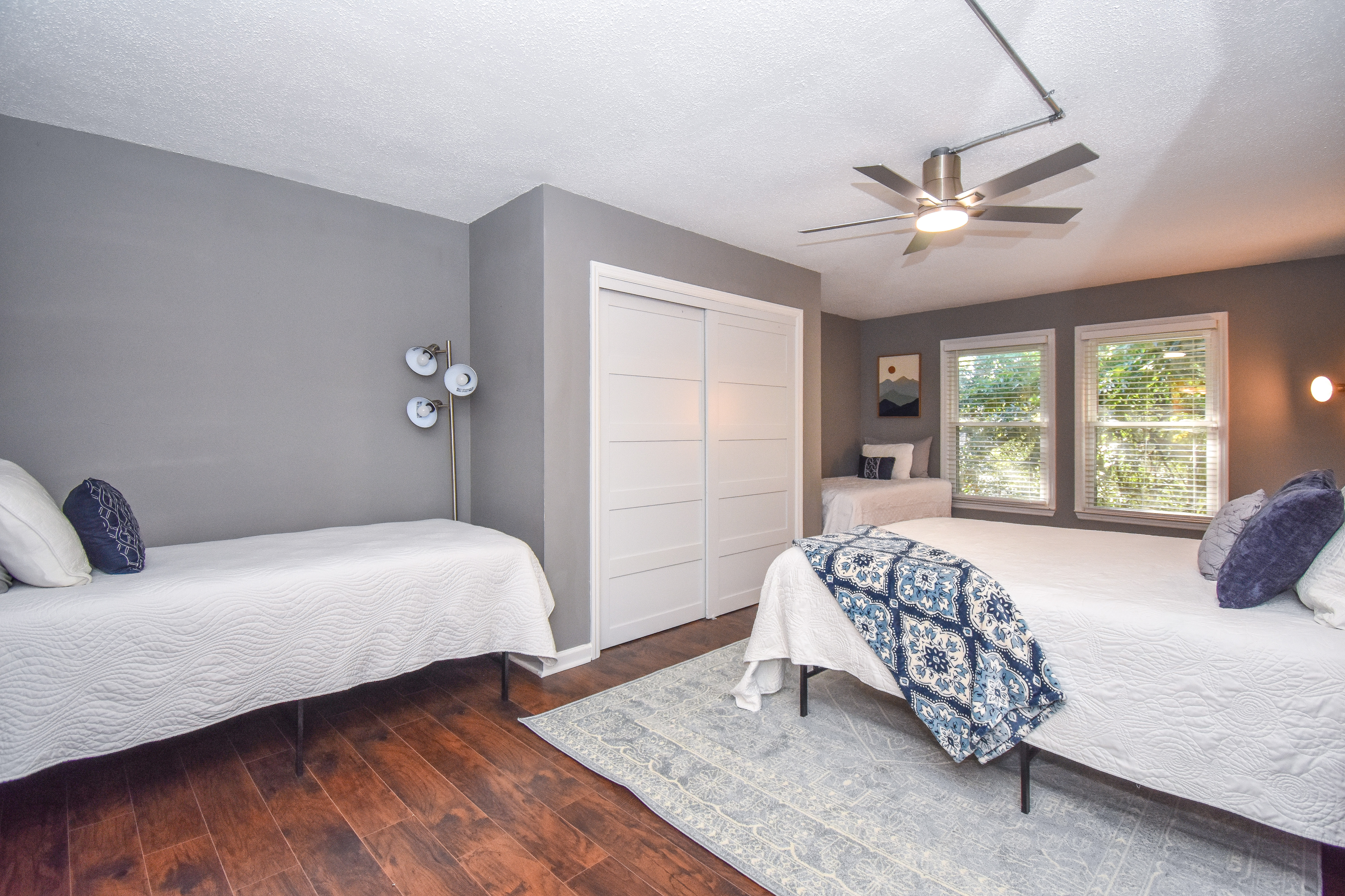 - Top-floor unit (three stories) with four short flights of stairs — please note: wheelchair inaccessible