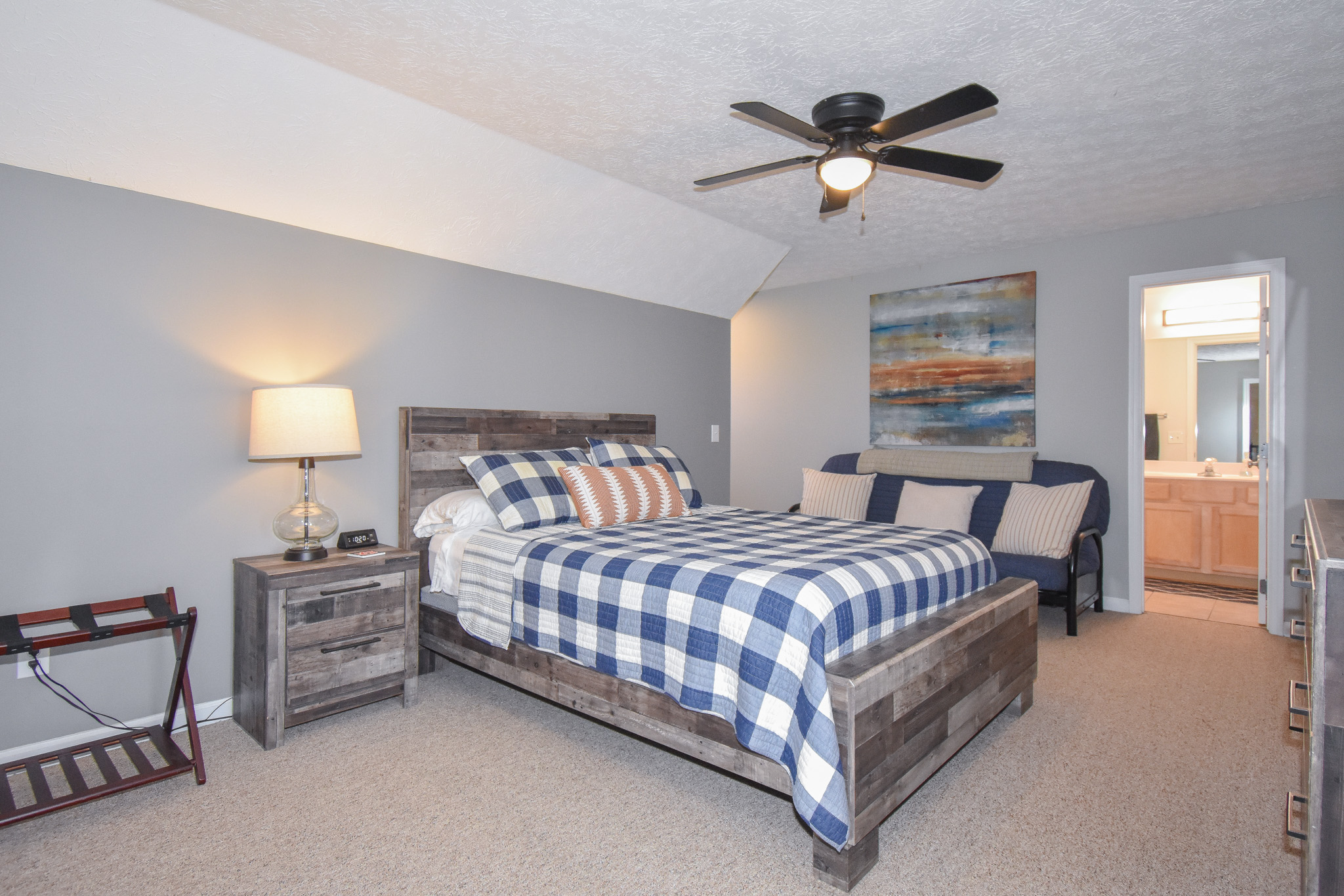 Each of the three queen bedrooms features its own private en suite bathroom, giving everyone space and privacy. Plus, the upstairs bedroom includes a queen futon, so the condo comfortably sleeps up to eight guests.