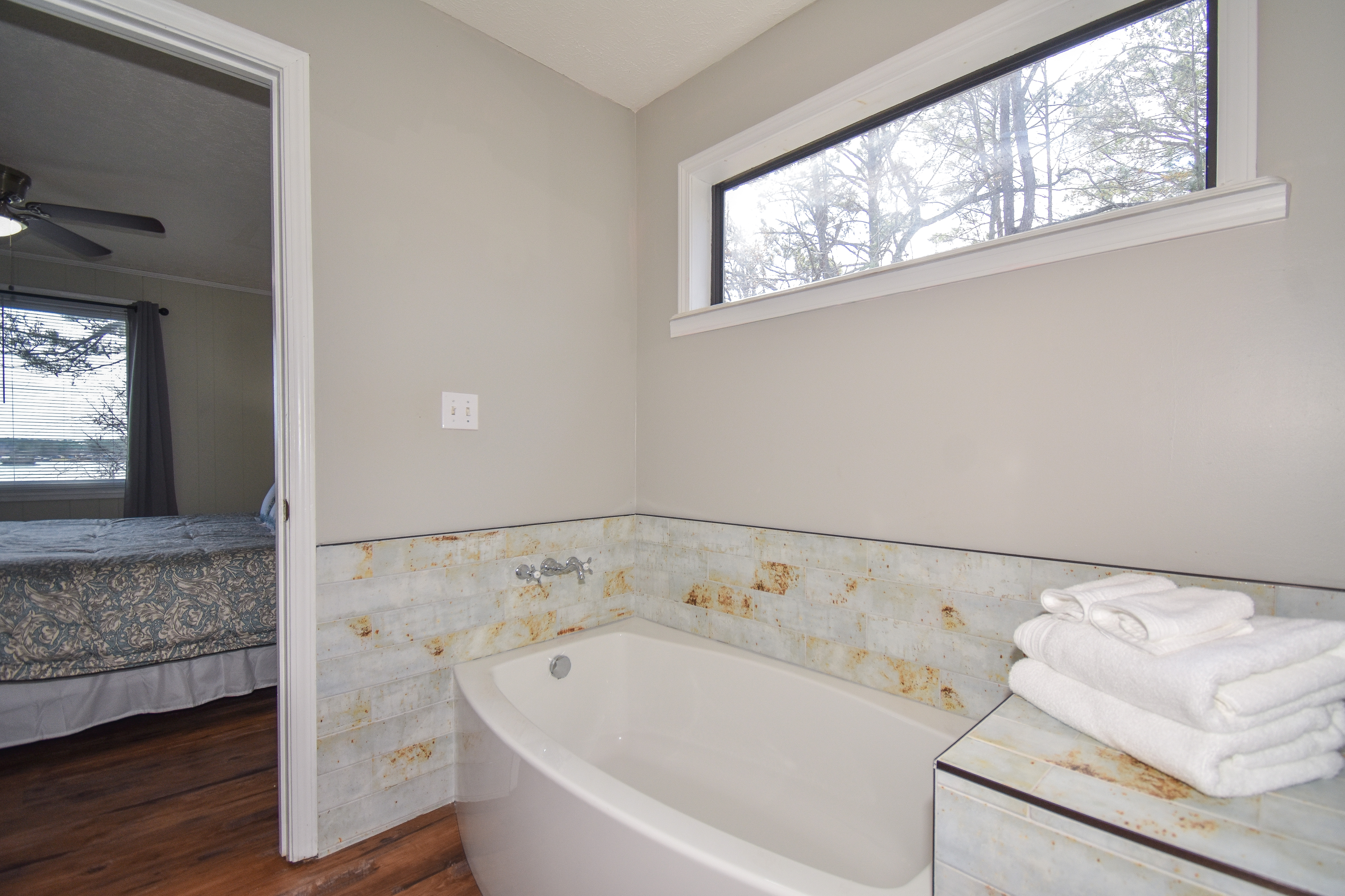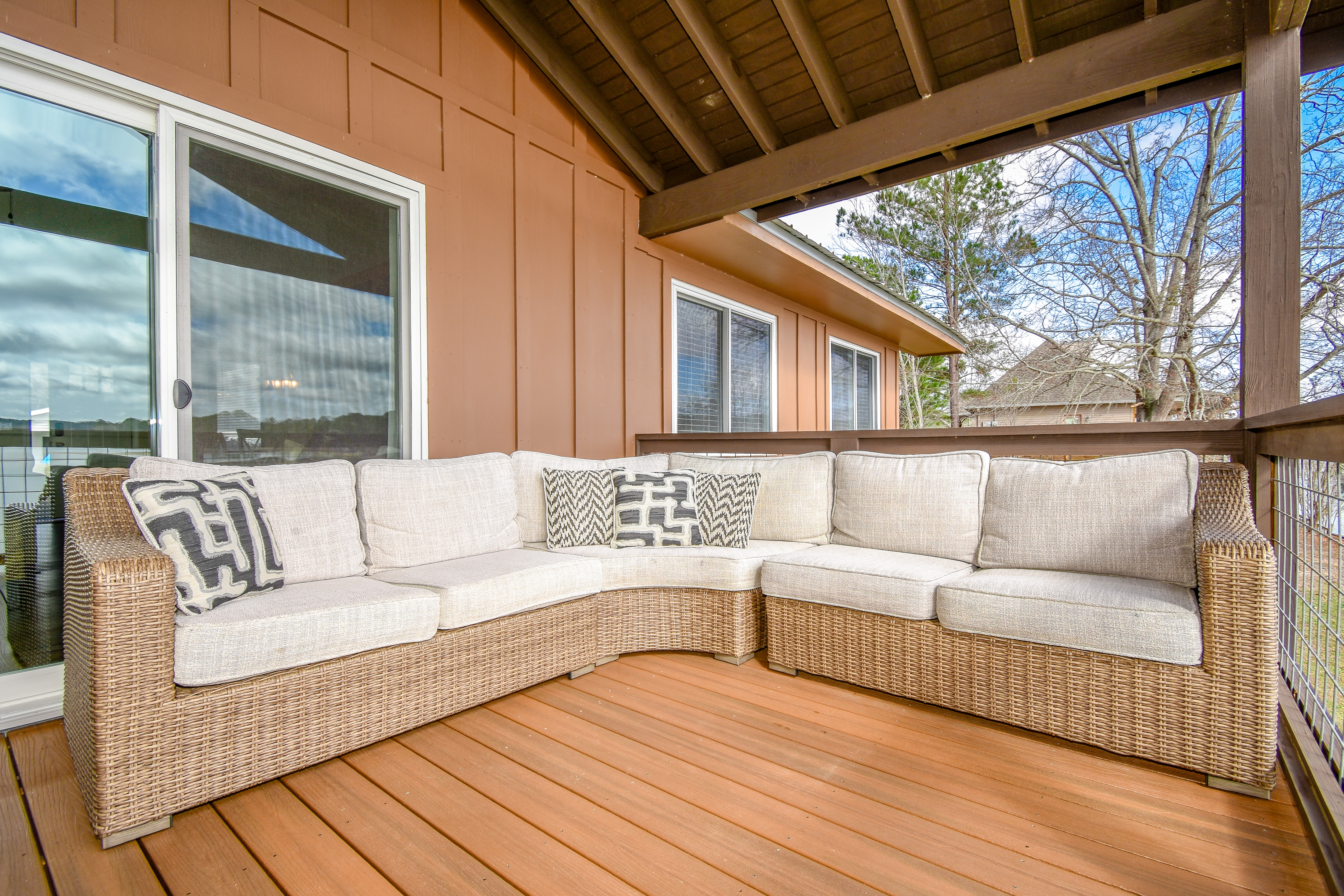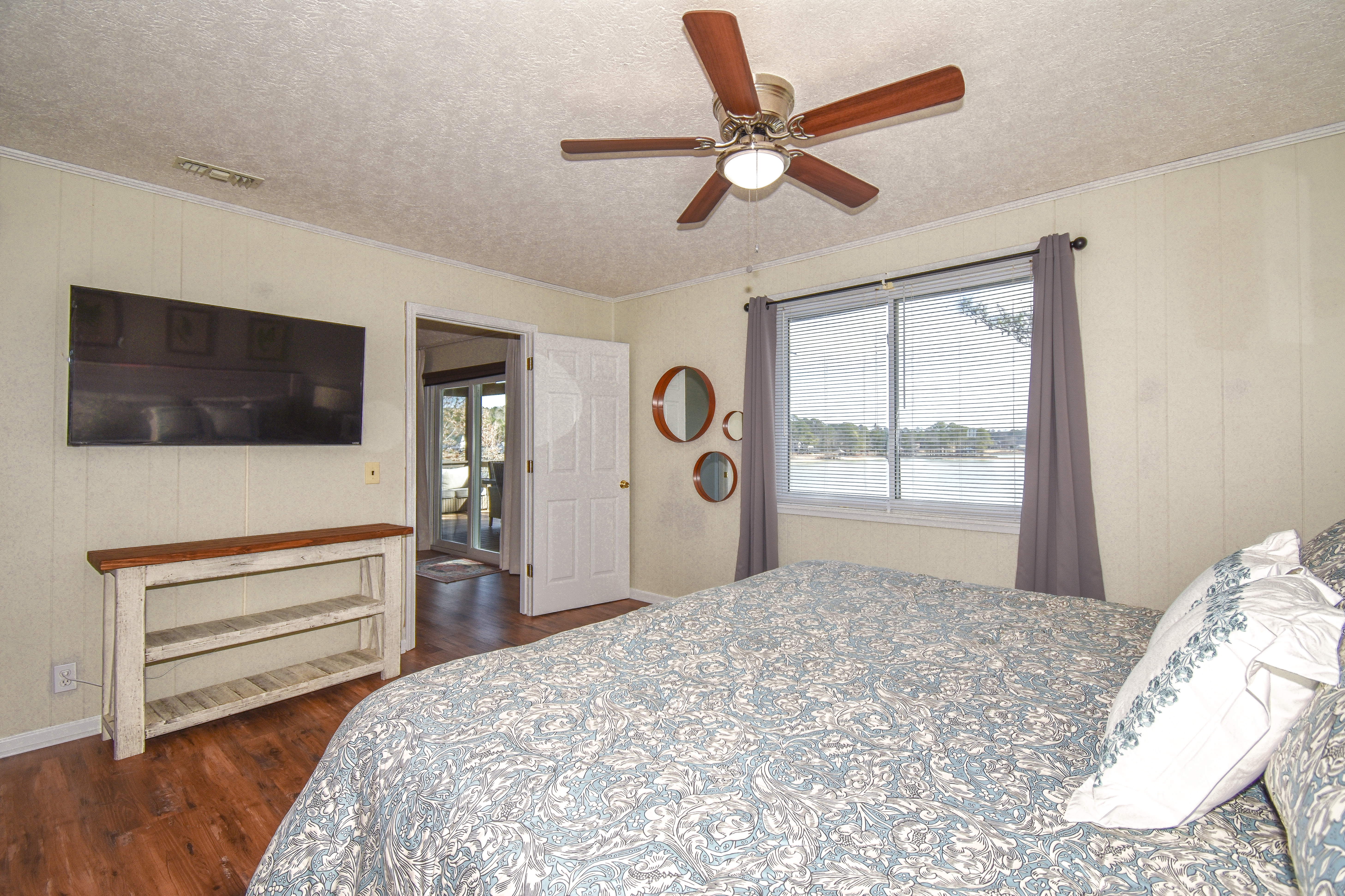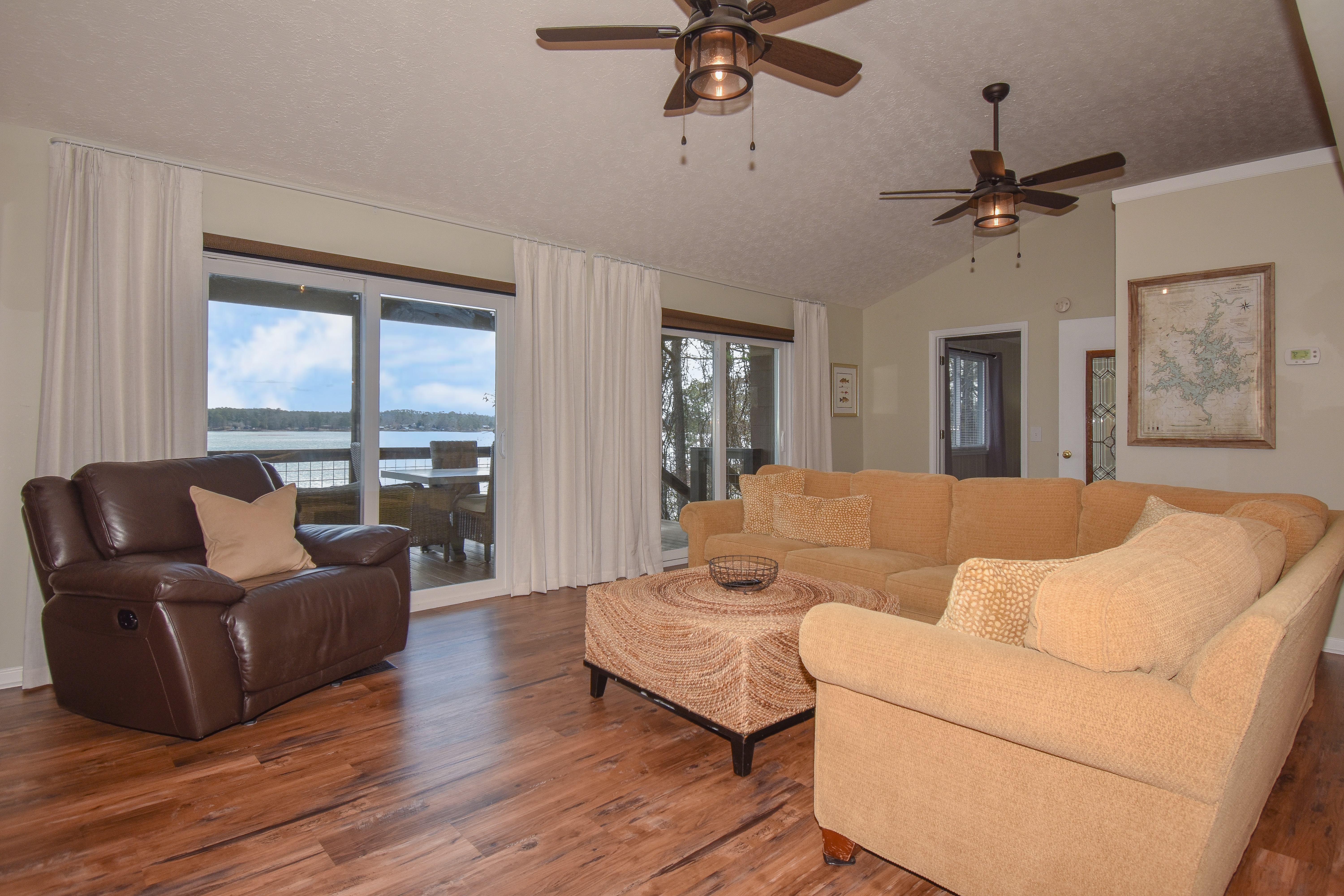 As you walk into the living room the view of the lake is worth a million dollars! The shoreline across the way was like a Bob Ross painting. The home was very clean and so well put together. The beds slept very well just as good as my bed at home. The porch has a nice big table which we used for every meal. In the evenings we enjoyed cocktails by the fire pit as we enjoyed the peaceful atmosphere. This is a getaway we enjoyed and needed and will be back!- Anonymous U from Opelika, Posted: 11/17/2025